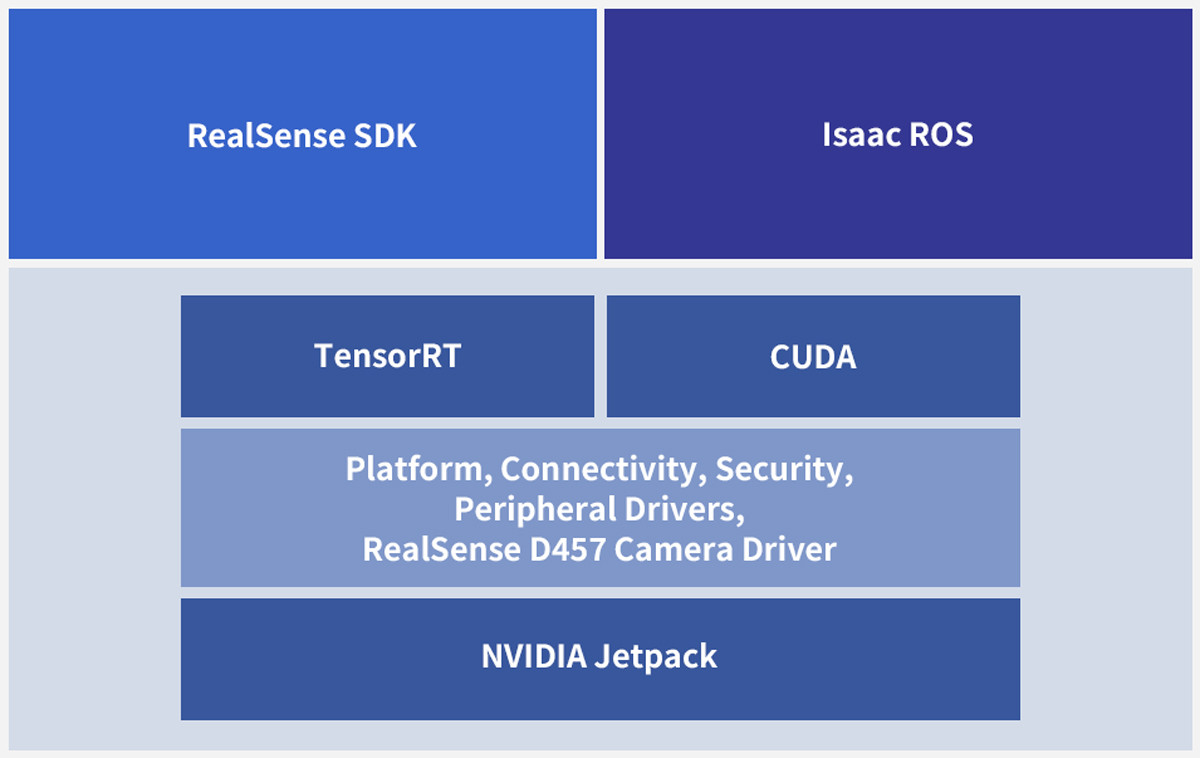 With shared JetPack and RealSense software environment, you can easily swap, scale, or upgrade your system as your project grows.